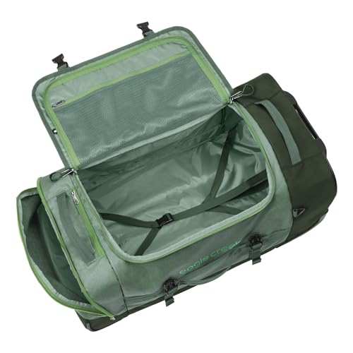 resilient Duffel Bag: The Eagle Creek Cargo Hauler XT Wheeled Duffel is built with heavy-duty wheels, has a padded base, and is a water resistant duffel bag made from recycled fabricHands Free Carry Bag: There are many ways to carry this portable duffel bag as it has tuckaway backpack straps and can function as a wheeled backpackEasy Access Compartment: This simple storage bag has a wide main compartment opening and an internal mesh organizer pocket, making it an ideal travel accessory for all types of travelExternal Compression Straps: This adventure travel duffel bag has deployable backpack straps, heavy duty grab handles, and durable compression straps for maximum versatilityAdventure Travel Outfitters Since 1975: At Eagle Creek, we know a thing or two about travelβwe equip travelers with gear to take beyond the familiar and into the unknown