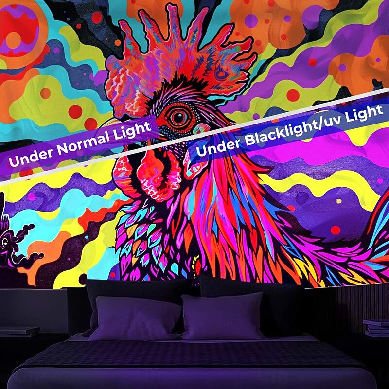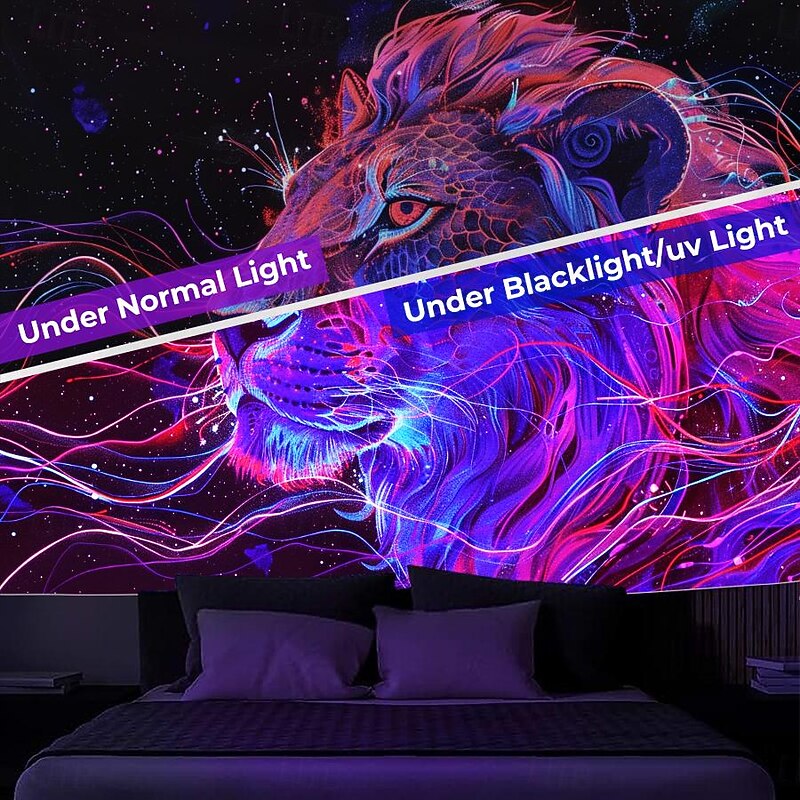 Highlights 【Durable Construction】 Crafted with high-quality polyester fabric, this tapestry is built to last. Its robust composition ensures that you can enjoy its beauty for years to come. 【Soft and Lightweight】 This tapestry is soft to the touch and lightweight, making it perfect for both indoor and outdoor use. 【Multiple Size Options】 Available in different sizes to accommodate any room's dimensions. 【Intricate Design】 The tapestry features a captivating design inspired by life itself. Its vivid imagery, crisp lines, and vibrant colors will become a conversation piece in any room. 【Versatility at Its Best】 Not just for wall decor, this tapestry can also double as a tablecloth or a picnic blanket, adding functional versatility to its artistic charm. 【Note】 1. Please allow 1-2cm (0.4"-0.8") deviations due to manual measurement. 2. Please understand the tiny color vary from the product due to different light and screen display. 3. UV/Black Light Reactive: This glow in the dark tapestry glows under blacklight / UV light. In normal light, the colors also are full and vivid.