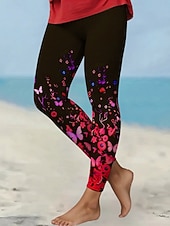 More information about Women's Pants Trousers Leggings Streetwear Casual Full Length High Waist Floral Elastic Waist Print Breathability Comfortable Stretchy Vacation Street Daily Wear Yellow Red Purple Fuchsia Summer