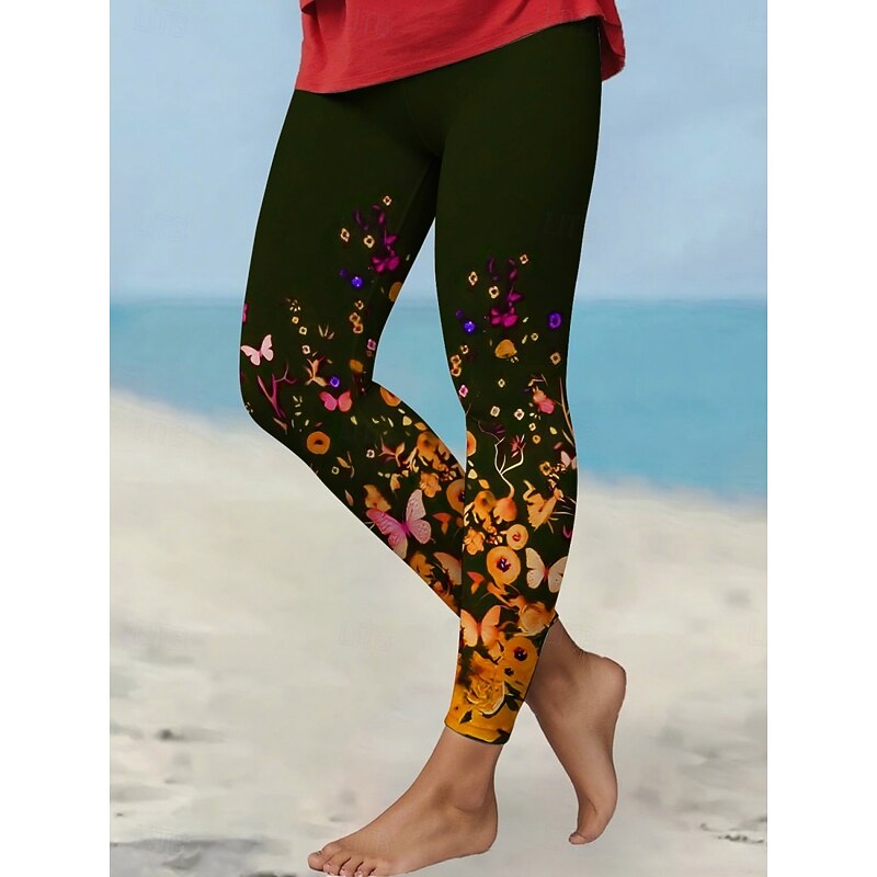 HOT ! Women's Pants Trousers Leggings Streetwear Casual Full Length High Waist Floral Elastic Waist Print Breathability Comfortable Stretchy Vacation Street Daily Wear Yellow Red Purple Fuchsia Summer