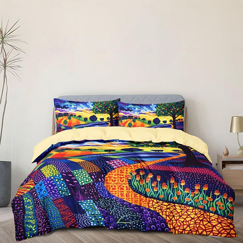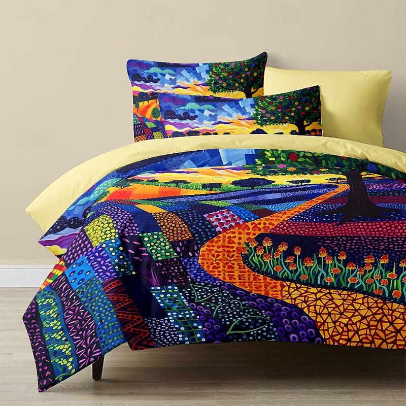Landscape Pattern Duvet Cover Set Set Soft 3-Piece Luxury Cotton Bedding Set Home Decor Gift Twin Full King Queen Size Duvet Cover 1