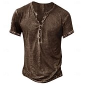 More information about Men's Henley Shirt Tee Top Long Sleeve Shirt Short Sleeve Plain Vintage Fashion Basic Washed Henley Vacation Street Going out Summer Dark Brown Dark Grey Light Grey Henley T-Shirt
