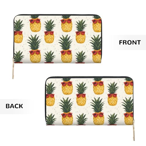 • Material Composition: This Cute Pineapple Print leather wallet is crafted from quality PU leather with a soft inner lining. Designed to offer a sleek and comfortable grip, it combines the classic look of leather wallets for women with a lightweight and eco-conscious build