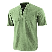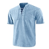 More information about Men's Shirt Summer Shirt Beach Wear Casual Shirt Black Wine Army Green Navy Blue Blue Short Sleeve Plain Solid Colored Stand Collar Outdoor Street Lace up Clothing Apparel Fashion Casual Breathable