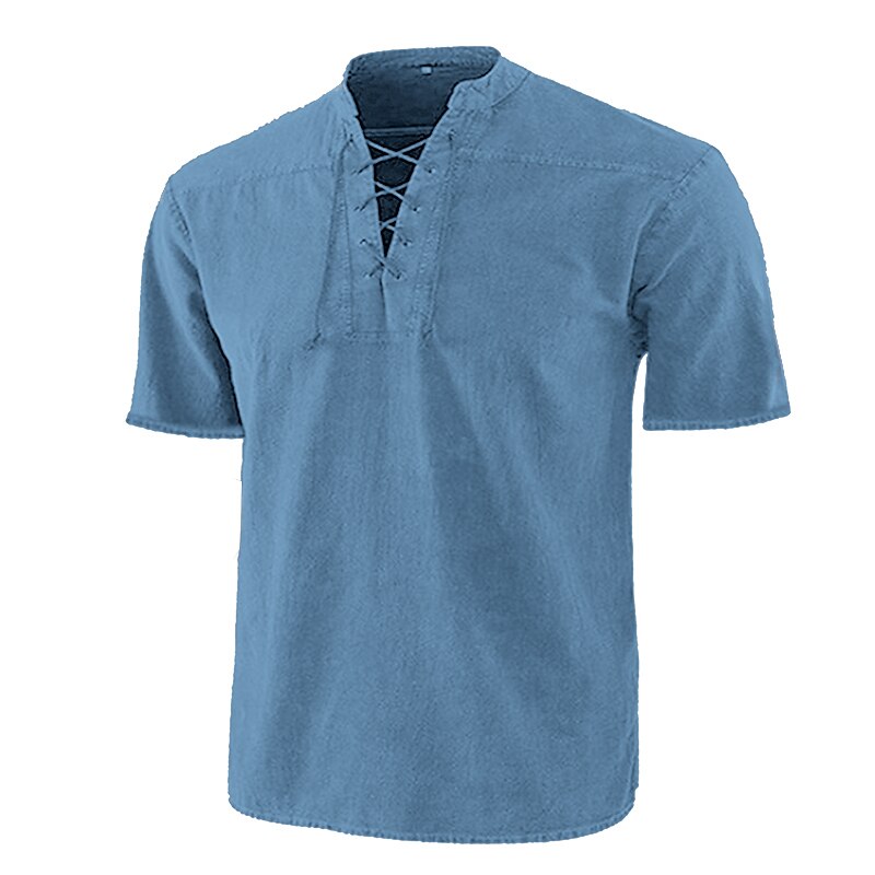 Men's Shirt Summer Shirt Beach Wear Casual Shirt Black Wine Army Green Navy Blue Blue Short Sleeve Plain Solid Colored Stand Collar Outdoor Street Lace up Clothing Apparel Fashion Casual Breathable 8