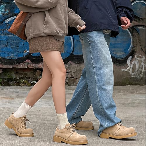 • [Vintage Suede Texture] The upper of these men's thick-soled Oxford shoes is crafted from high-quality suede, creating a naturally soft, matte texture and a vintage feel. The light khaki hue complements a variety of outfits, whether paired with casual jeans for a casual look or with suit pants for a casual, businesslike vibe. It adds a touch of understated sophistication to any outfit, making it a must-have for fashionistas looking versatile.