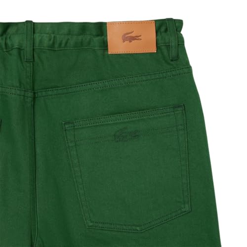 • SIGNATURE DETAILING: These trousers include front and back pockets, a ticket pocket at the front, and a branded jacron on the back waistline. The back pocket is adorned with an embroidered croco outline and a 1" green crocodile, adding a distinctive Lacoste touch that enhances their timeless appeal.