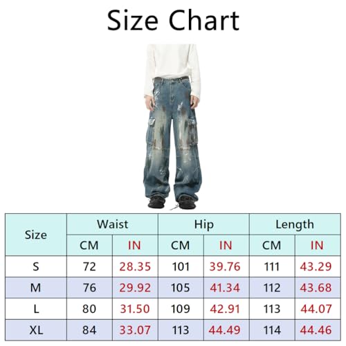 Fabric type: 100% DenimCare instructions: Machine WashOrigin: ImportedMaterial: Y2k retro baggy jeans are made of high-quality denim fabric, which is breathable and snug. These vintage baggy jeans are your absolute first choice.Design: Relaxed fit, full-length, retro streetwear style, flap pockets, straight-leg pants, and Y2k Harajuku styling.Pairing: Pair men's baggy jeans with a leather jacket, plaid shirt, loose hoodie, oversized sweatshirt, vest, sweater, coat, sneakers, or canvas shoes.Occasions: Suitable for office, work, travel, formal occasions, school, dates, parties, streetwear, vacations, shopping, and more.Note: Harajuku men's jeans are available in sizes S/M/L/XL. Please refer to the size chart in the description to select your normal size or size up. Perfect for everyday use. superior materials and excellent craftsmanship ensure long-lasting durability.