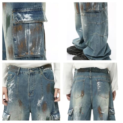 Men's Vintage Multi Pocket Tie Dye Jeans Loose Fit Y2K Skater Pants Streetwear