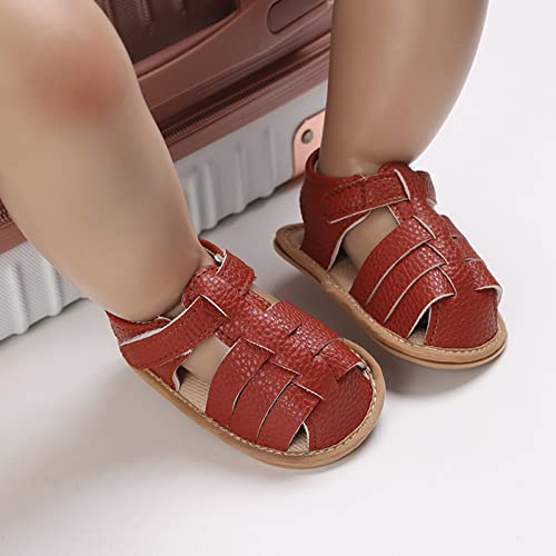 Baby Girl Sandals Infant Boys Non Slip Rubber Sole Beach Outdoor First Walkers Crib Shoes Solid Ankle Strap Flats 5