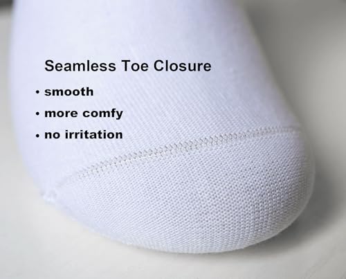 • Seamless Socks for Maximum Comfort: Featuring a seamless toe design that minimizes friction, these women's white crew socks help prevent irritation and blisters, making them ideal for blister-free walks, runs, and workouts