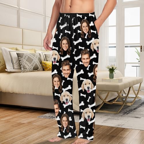 HOT ! Custom Pajama Pants for Men Women, Personalized Face Photo Sleepwear Bottom,Customized Christmas Pj Trousers Gifts