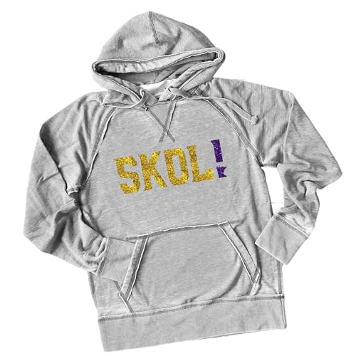 More information about SKOL! Vikings Hoodie Unisex Men's Women's Minnesota Football Sparkly or Matte Soft Lightweight Hooded Sweatshirt, Gray (XL, Dark Grey Hoodie/Yellow Gold/Purple Matte)