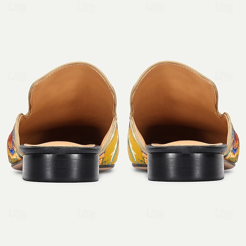 Men's Yellow Premium Cowhide Mules with Vibrant Floral Embroidery and Tassel Detail – Chic Footwear for Summer Gatherings and Casual Festivities 9