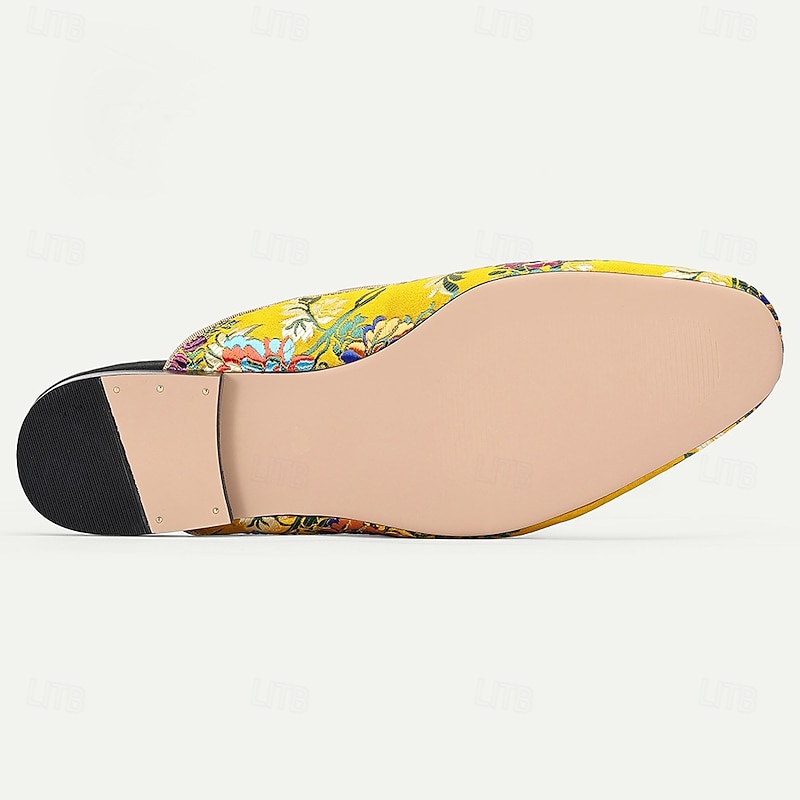 More information about Men's Yellow Premium Cowhide Mules with Vibrant Floral Embroidery and Tassel Detail – Chic Footwear for Summer Gatherings and Casual Festivities