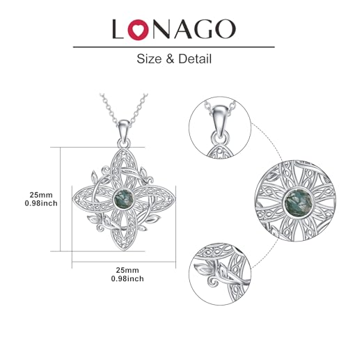 More information about LONAGO Witches Knot Moss Agate Necklace 925 Sterling Silver Original Protection Witch Celtic Knot Pendant Necklaces Wiccan Witchy Pagan Jewelry for Women