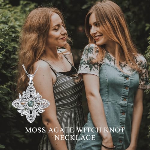 sought-after ! LONAGO Witches Knot Moss Agate Necklace 925 Sterling Silver Original Protection Witch Celtic Knot Pendant Necklaces Wiccan Witchy Pagan Jewelry for Women