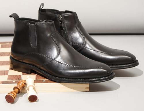 Santimon Mens Boots Leather Zipper Ankle Dress Chelsea Boots for Men Black Tan 5