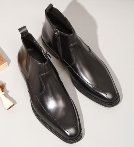sought-after ! Santimon Mens Boots Leather Zipper Ankle Dress Chelsea Boots for Men Black Tan