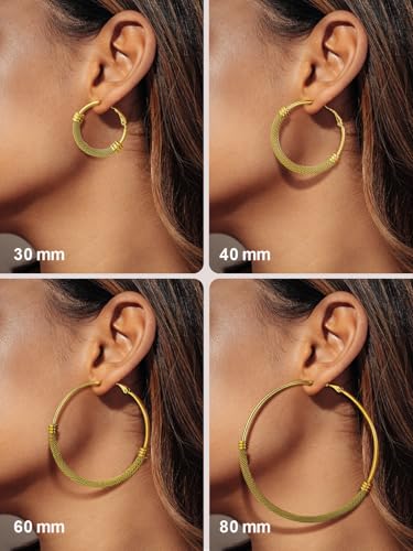 HOT ! FOCALOOK 14K Gold Hoop Earrings, Lightweight Hypoallergenic Large Stainless Steel Black Hoops for Women 30/40/60/80mm