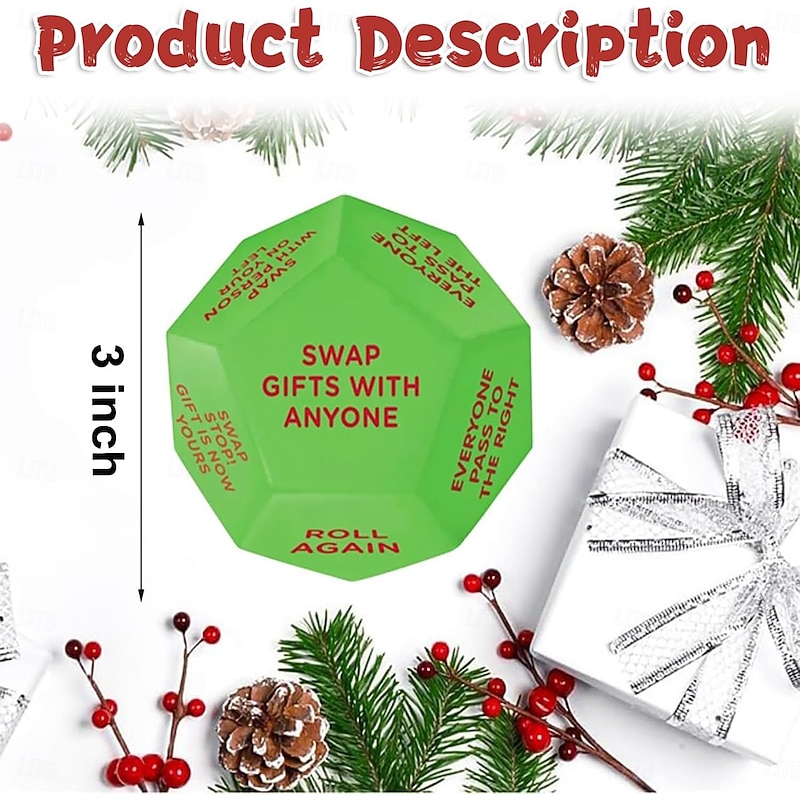 $13.99 - Santa Swap Gift Exchange Dice,2025 New Gift Exchange Dice, Exchange Dice Game,Christmas Group Party Game,12 Different Sides 3 * 3 * 3in Pu Material Gift Exchange Dice Game 2025. Shop for cheap Party Favor online? Buy at lightinthebox.com on sale today!