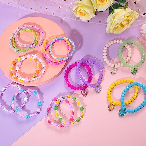 PinkSheep Bracelets for Kids Girls Pearl Bead Bracelets Teen Jewelry Set Party Favor Costume Princess Pretend Play,Beaded Stretch Charm Bracelet Set Bracelets Bulk