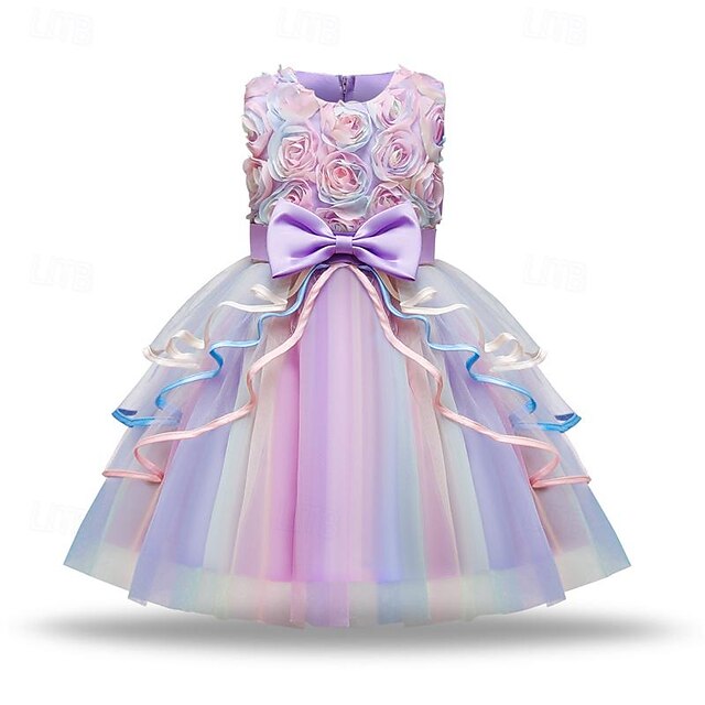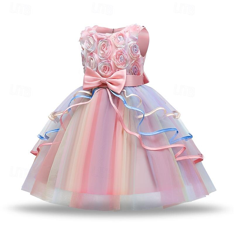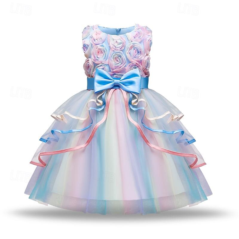 More information about Girls' 3D Rainbow Party Dress Sleeveless Summer Spring Performance Party Birthday Princess Beautiful Sweet Kids 4-12 Years Party Dress Swing Dress A Line Dress Midi Regular Fit