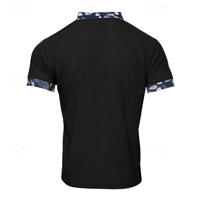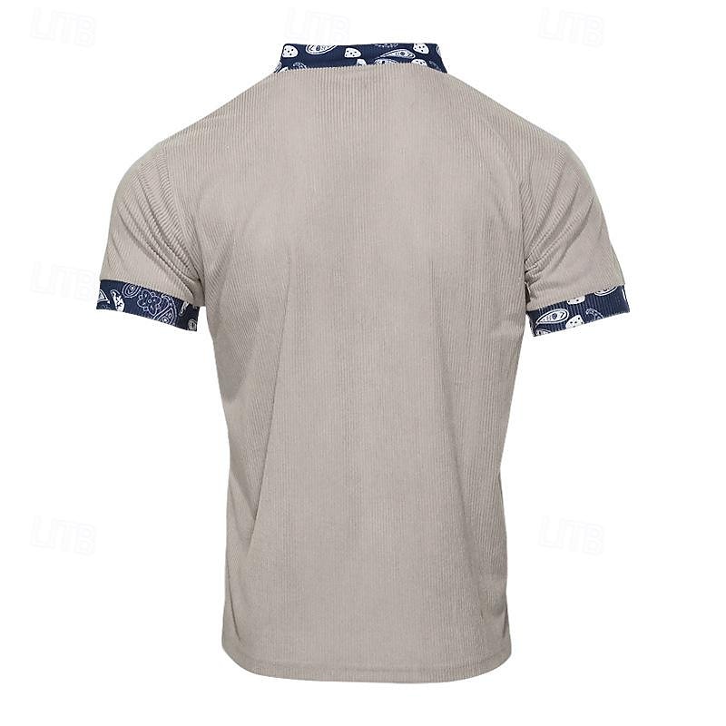 : Crafted from lightweight polyester, this men's short-sleeve shirt offers a breathable and micro-elastic fit that ensures comfort and ease of movement. The ribbed texture adds a tactile appeal and subtle dimension to the fabric, making it ideal for spring and summer wear.