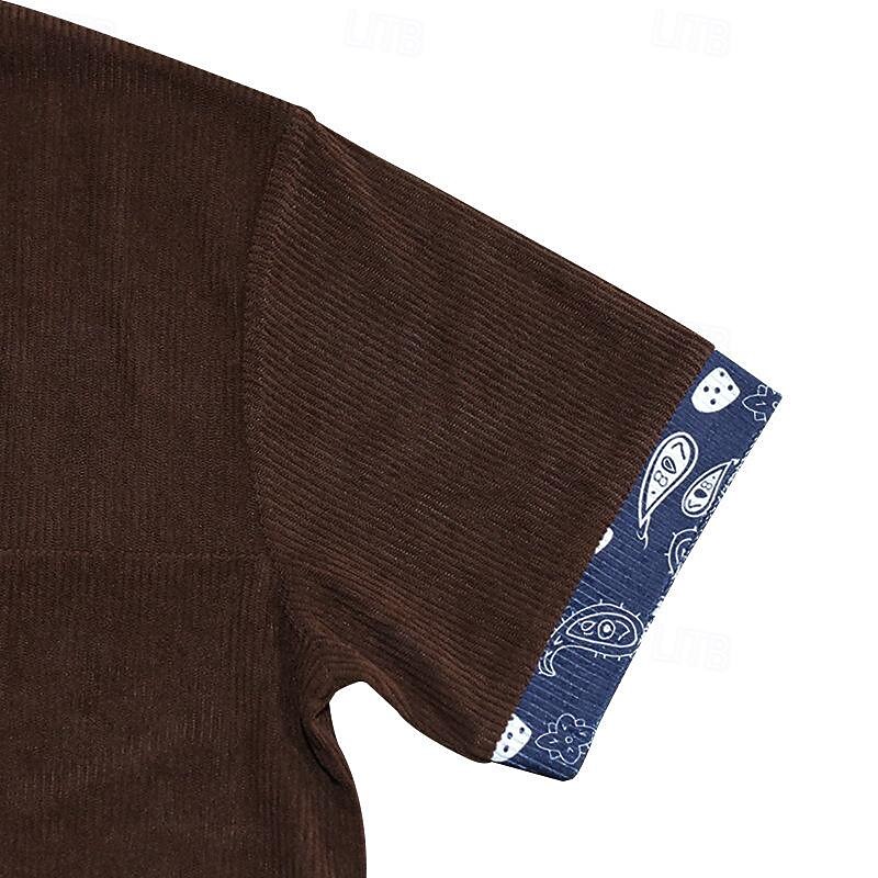 Men's T Shirt Corduroy Shirt Tee Short Sleeve Shirt Short Sleeve V Neck Spring & Summer Color Block Fashion Designer Basic Lace up Patchwork Vacation Street Going out Black Brown Khaki Top Tee for Men