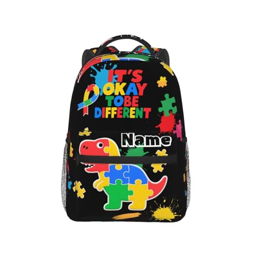 Why Choose Custom Kids Backpack for Boys Girls - Personalized Colorful Puzzles Dinosaur Toddler School BookBags with Name, Autism Awareness Casual Daypack Travel Laptop Backpacks?