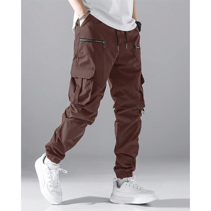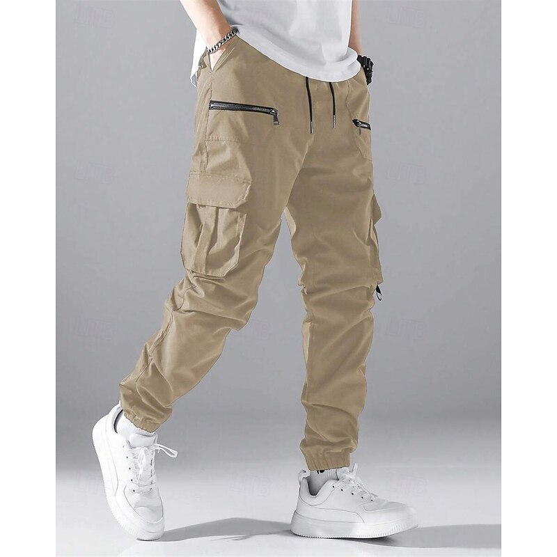 HOT ! Men's Cargo Pants Joggers Trousers Drawstring Elastic Waist Multi Pocket Plain Wearable Outdoor Daily Camping & Hiking Fashion Classic ArmyGreen Black