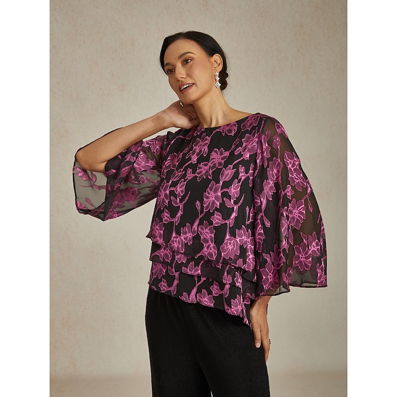 More information about Women's Blouse Chiffon Tops Floral Elegant Stylish Casual Crew Neck Regular Tops Wedding Guest Date Night Outfits Cocktail Attire Lace Rose Pink Spring Fall Winter