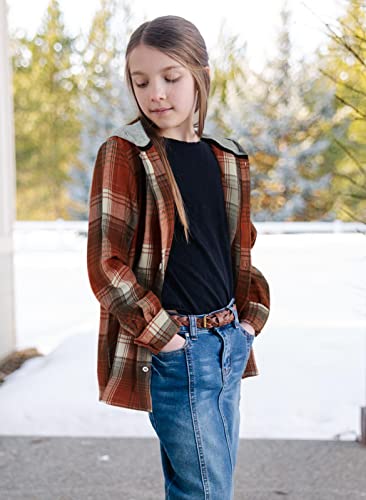Geckatte Kids Boys Girls Button Down Shirts Long Sleeve Lightweight Plaid Hooded Flannel Shirt Cute Tops 5