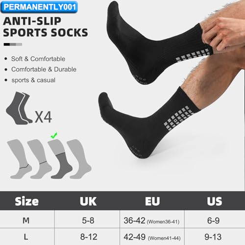 4-Pair Anti-slip Grip Soccer Socks Men Women Cushioned Sports Sock Rugby Yoga Basketball Running Hiking Work 6