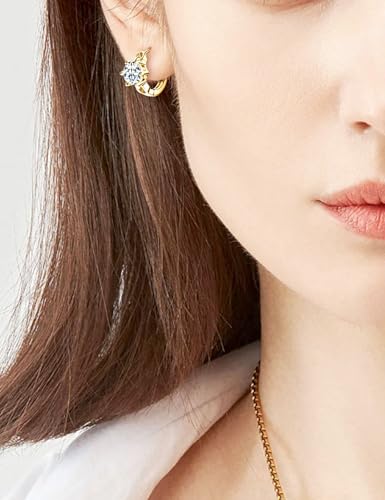 More information about Moissanite Hoop Earrings for Women, 2 Carat per Pair, D Color Lab Created Diamond Alternative, Hypoallergenic 18K Gold Vermeil Sterling Silver | Fine Jewelry Gift for Her