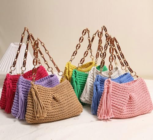 Origin: ImportedClosure type: MagneticLining: PolyesterCotton Material: This crochet handbag for women is made of superior cotton material, good weaving technique, polyester lining and metal and acrylic strap, tender, lightweight and versatileSweet Gift: Whether for Mother's Day, an anniversary, a birthday, summer vacation, holiday and other celebrated moment for sister, friends, lover, mother and more, a must-have clutch purse for womenβs summer wardrobeCompact Size: 28*1*17 cm/ 11.02*0.39*6.69 inch. The ideal everyday woven purse is large enough to store your daily essentials like sunglasses, cosmetic, phone, wallet, tissues, earphone and moreTrendy Handbag: With a removable but not long shoulder strap, this clutch purse could be used as a shoulder bag, a clutch tote and a handbag. The tassel clutch tote features various solid colors, is easy to match with any styles outfitsSummer Handbag: This handbag is a good companion for summer outdoor activities like work, beach, party, shopping, travel, vacation, wedding, evening and more. It can match with various styles outfits and make you looks more elegant Perfect for everyday use. High quality materials and excellent craftsmanship ensure long-lasting durability.