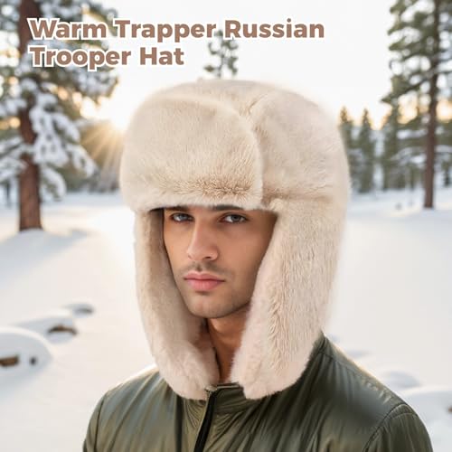 HOT ! Trapper Hat For Winter, Plush Ski Cap, Windproof Furry Headgear For Outdoor Cold Weather