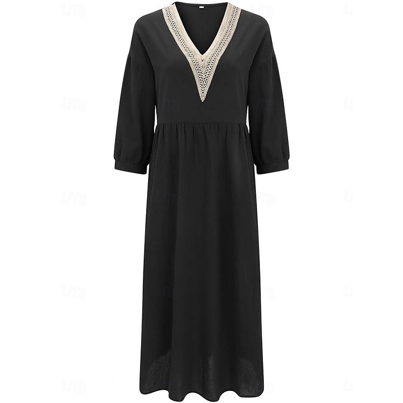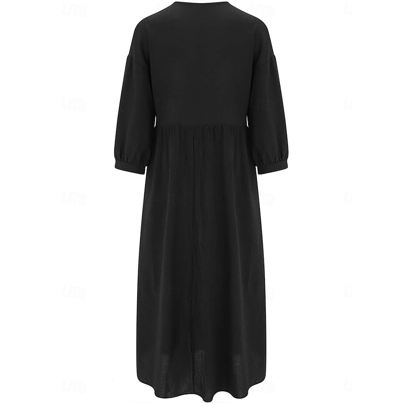 More information about Women's Midi Dress Elegant Vintage Stylish Lantern Sleeve Vacation Daily Regular Fit Plain 3/4 Length Sleeve V Neck Black White Summer Spring Fall