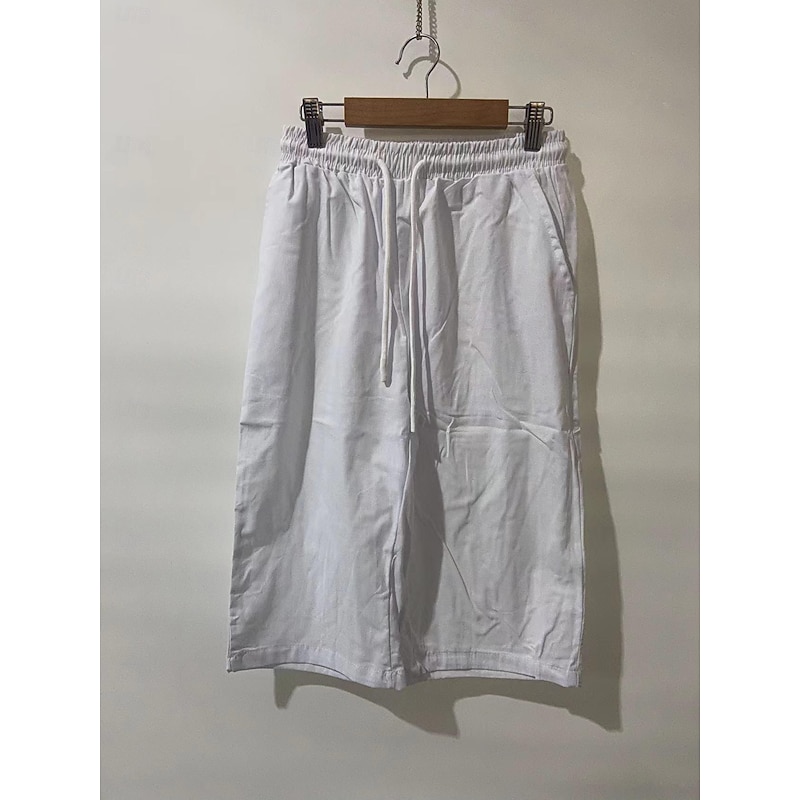 Women's Normal Cotton Linen Pants Chinos Casual Daily Knee Length Natural Solid Colored Pocket Drawstring Elastic Waist Breathability Comfortable Inelastic Vacation Casual Daily Navy-blue milk white 11