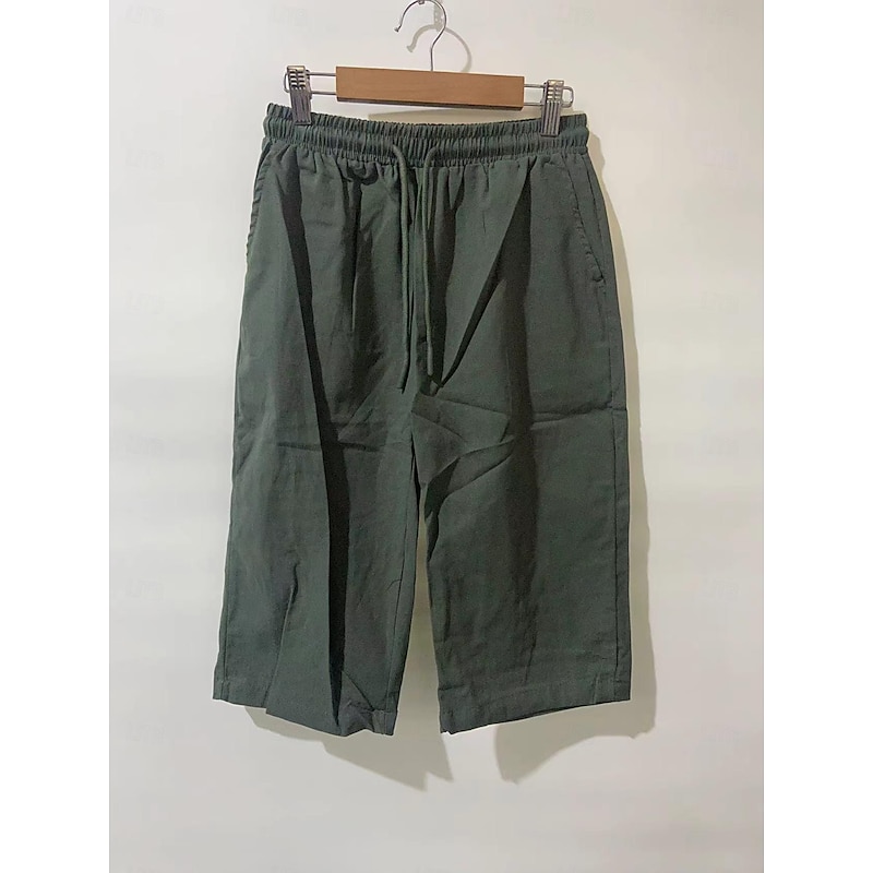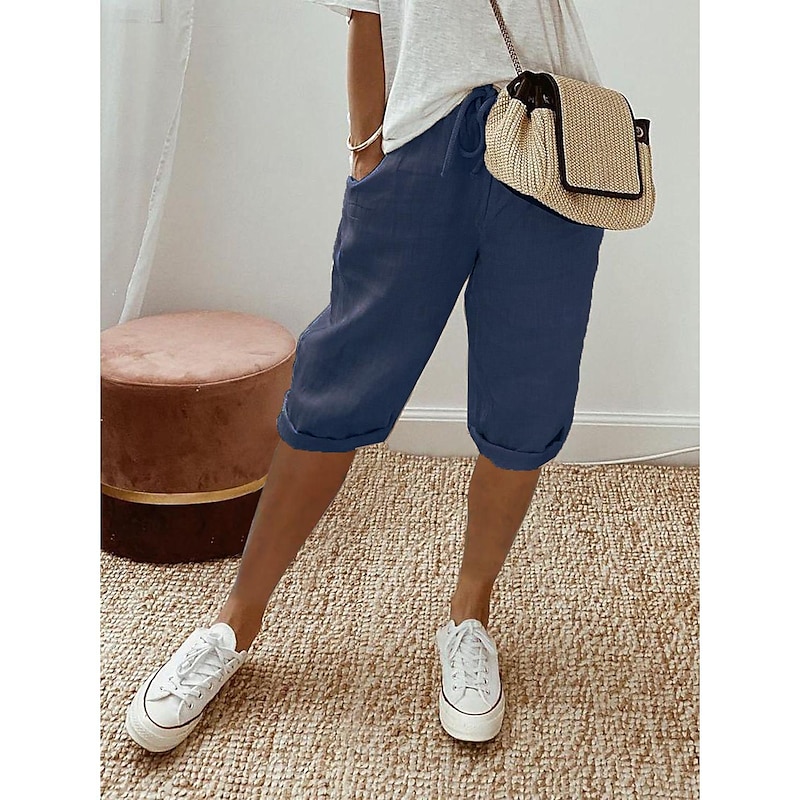 More information about Women's Normal Cotton Linen Pants Chinos Casual Daily Knee Length Natural Solid Colored Pocket Drawstring Elastic Waist Breathability Comfortable Inelastic Vacation Casual Daily Navy-blue milk white