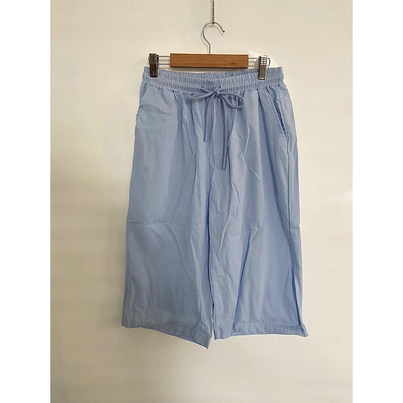 Women's Normal Cotton Linen Pants Chinos Casual Daily Knee Length Natural Solid Colored Pocket Drawstring Elastic Waist Breathability Comfortable Inelastic Vacation Casual Daily Navy-blue milk white 7