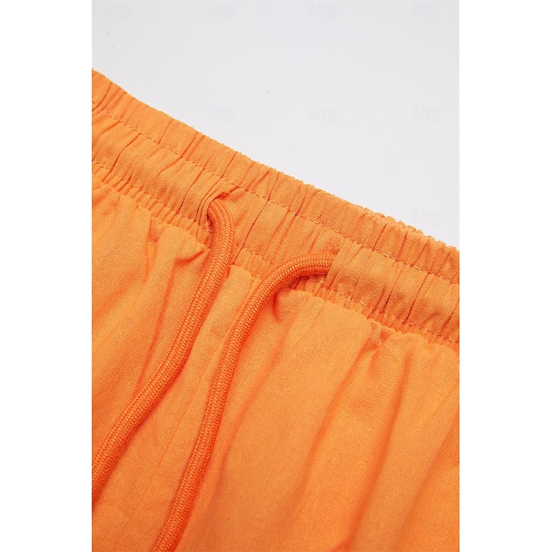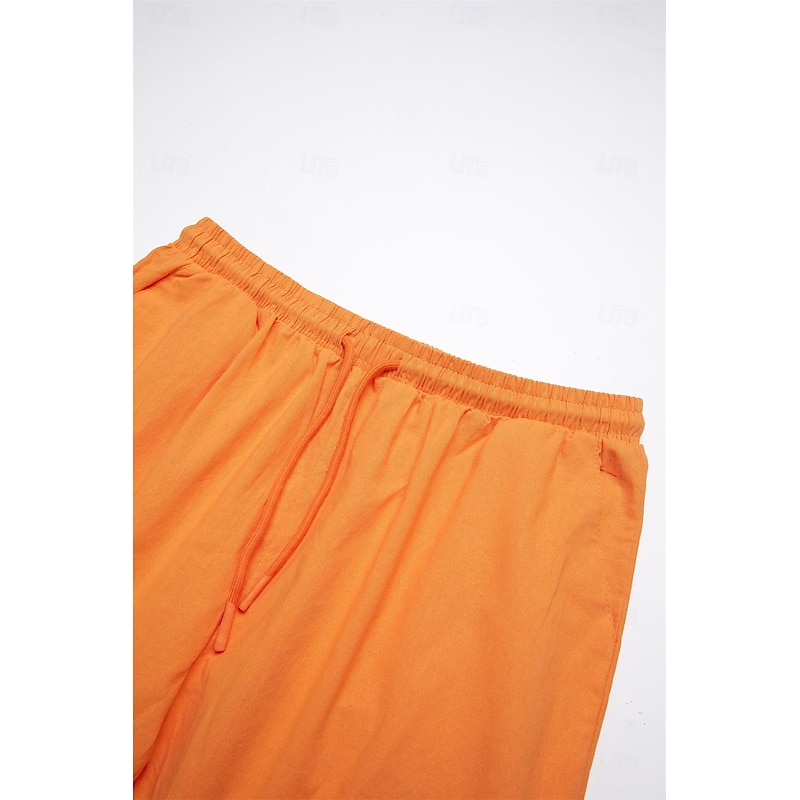 Women's Normal Cotton Linen Pants Chinos Casual Daily Knee Length Natural Solid Colored Pocket Drawstring Elastic Waist Breathability Comfortable Inelastic Vacation Casual Daily Navy-blue milk white 21