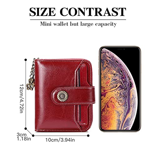 GOIACII Wallet for Women Leather Small RFID Blocking Bifold Zipper Pocket Card Holder with ID Window Wine Red 1