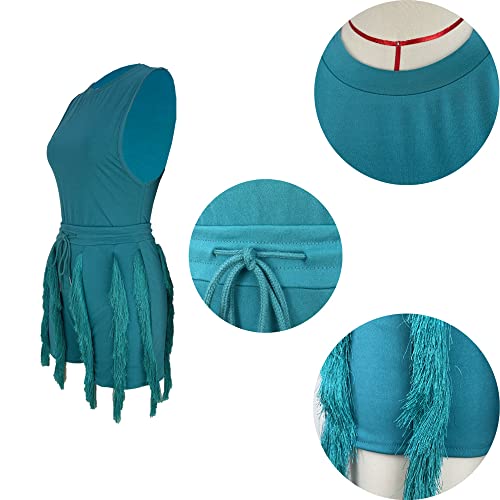 More information about PRIVIMIX Women 2 Piece Outfits Fringe Tassel Short Pants Set Sleeveless Top Sweatsuit High Waisted Clubwears