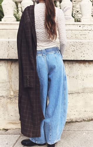 • Versatile Baggy Barrel Jeans Denim Pants: Stretchy elastic waist jeans drawstring denim pants/ Loose oversized balloon pants wide leg jeans patchwork pants