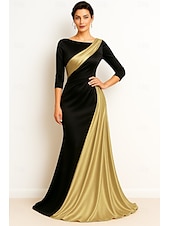 More information about Black Gold A-Line Evening Gown Elegant Dress Formal Wedding Floor Length Long Sleeve Boat NeckMother Of the Bride Dress Stretch Satin with Pleats