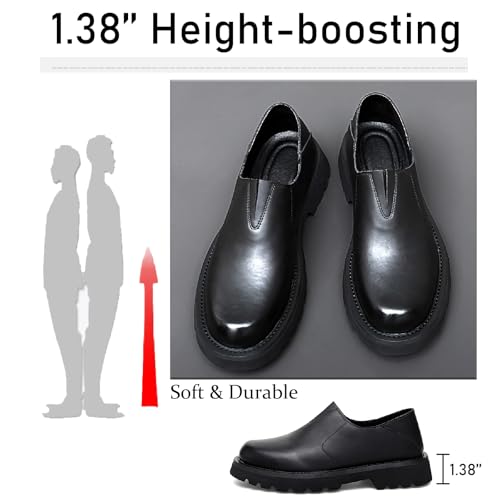 Men's Genuine Leather Platform Slip-on Loafers Retro relaxing Round Toe Anti-Slip Lug Sole Chunky Heel Penny Loafers for Business Casual Light Walking Work Shoes