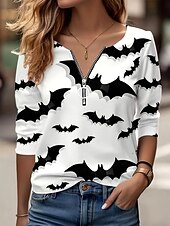 This Halloween Women's T shirt Bat Graphic Skull Elegant Vintage sleek Long Sleeve V Neck Round Neck Notched Neck Regular Tops Daily Weekend Zipper Print Black and White Spring Fall Winter combines elegant design with practical functionality. Every detail has been carefully considered to ensure you get the best possible experience. The superior construction means this product will serve you well for years to come.