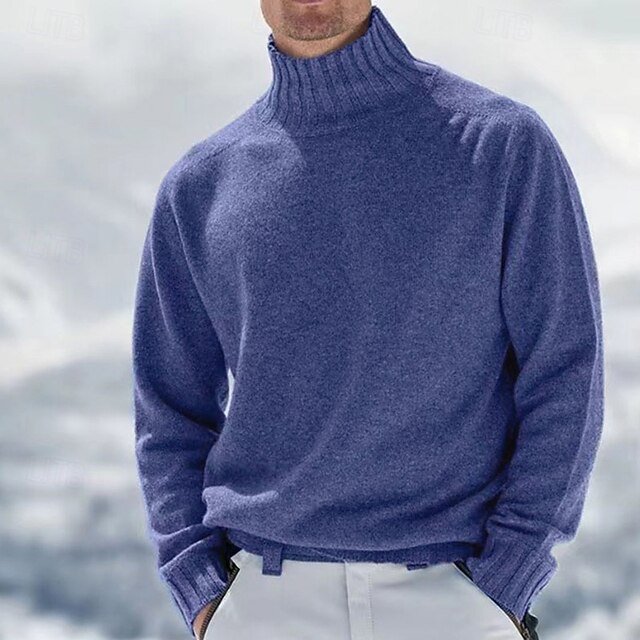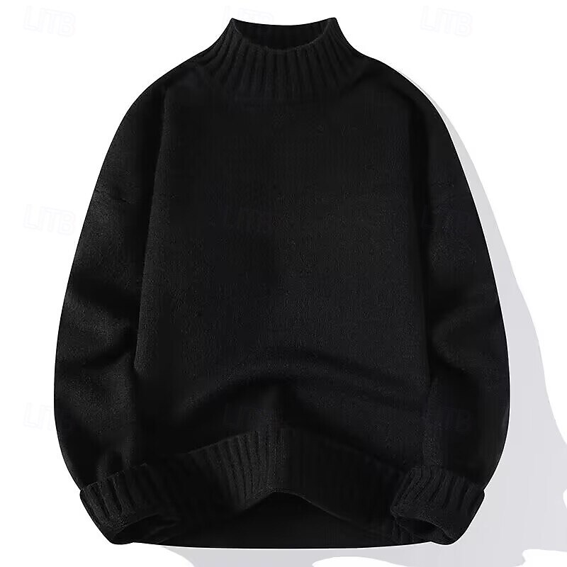 More information about Men's Sweater Pullover Sweater Jumper Mens Turtle Neck Jumper Jumper Ribbed Knit Regular Knitted Plain Turtleneck Modern Contemporary Work Daily Wear Clothing Apparel Winter Black White M L XL