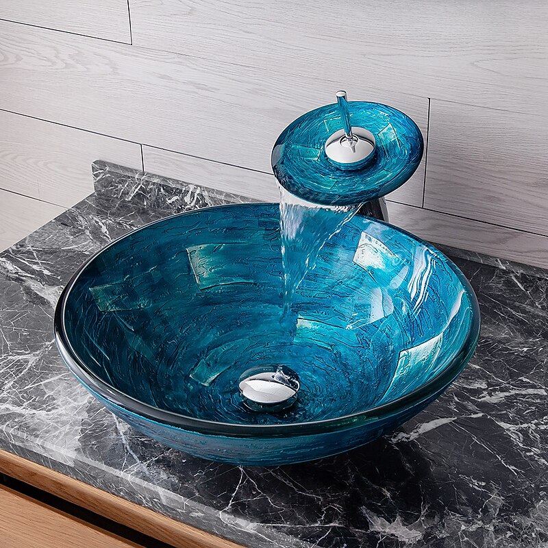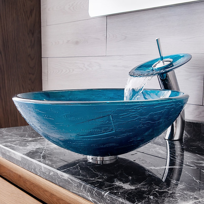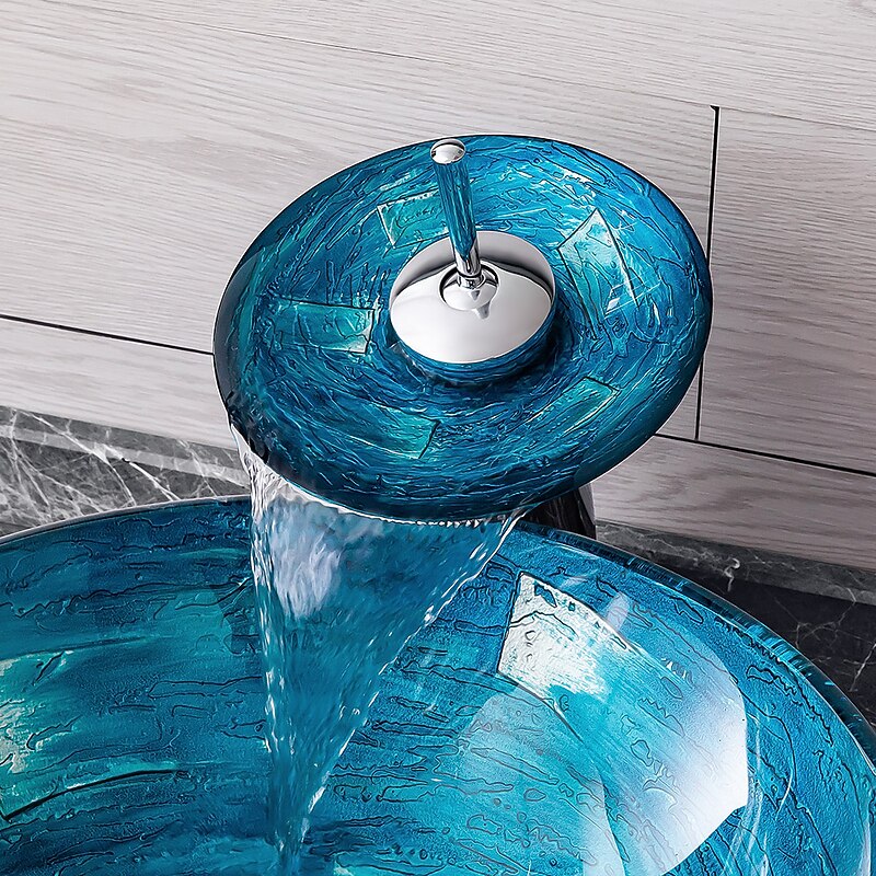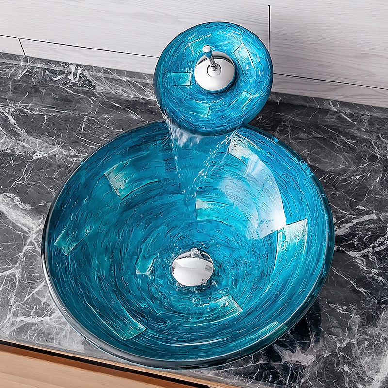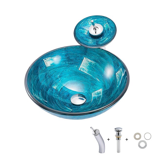 $315.89 - Minimalist Mediterranean Wind Round Basin Tempered Glass Wash Basin With Waterfall Faucet Basin Support Drainer 2025. Shop for cheap Vessel Sinks online? Buy at lightinthebox.com on sale today!
